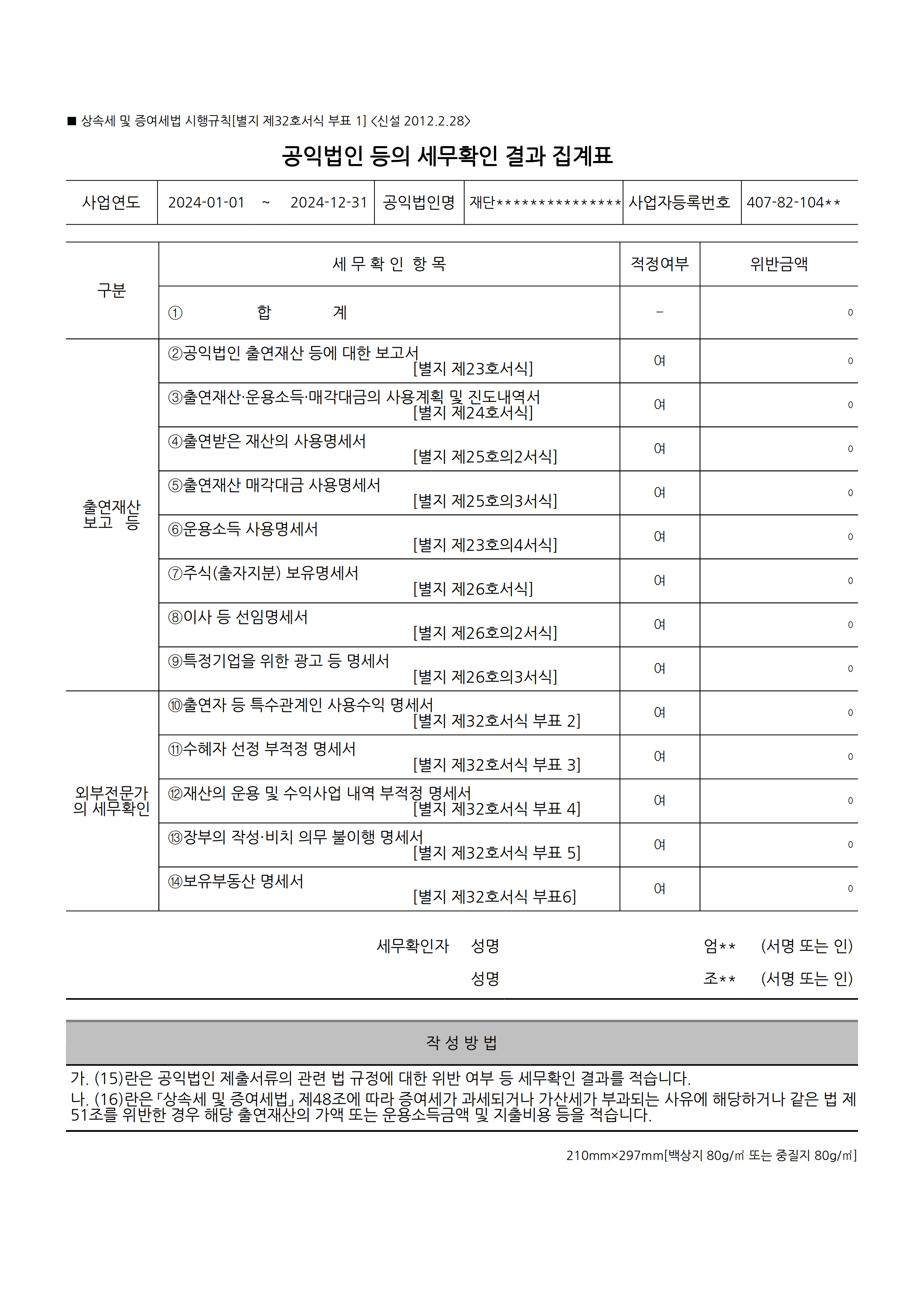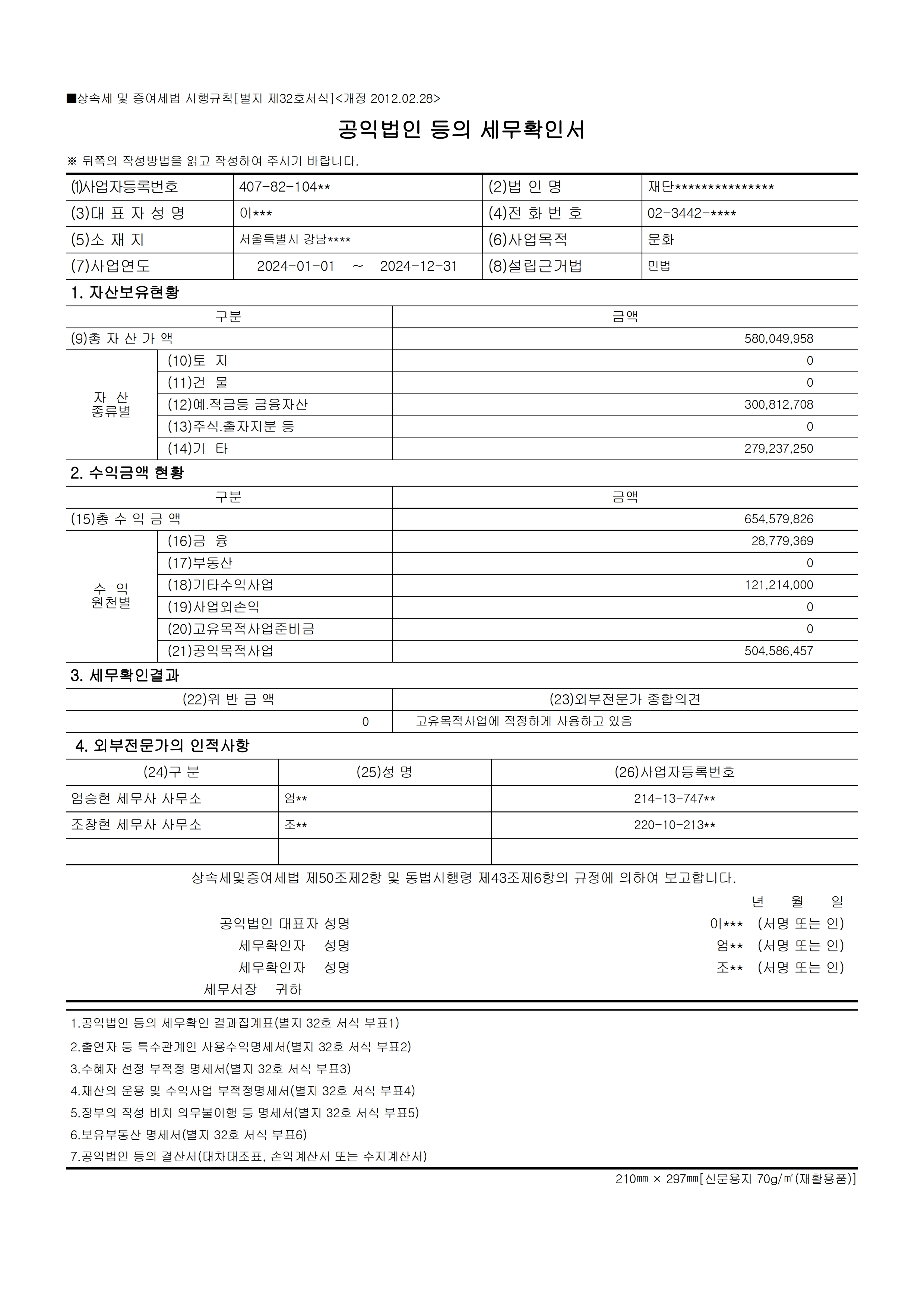 공지사항2024년 공익법인 출연재산 등에 대한 보고서
